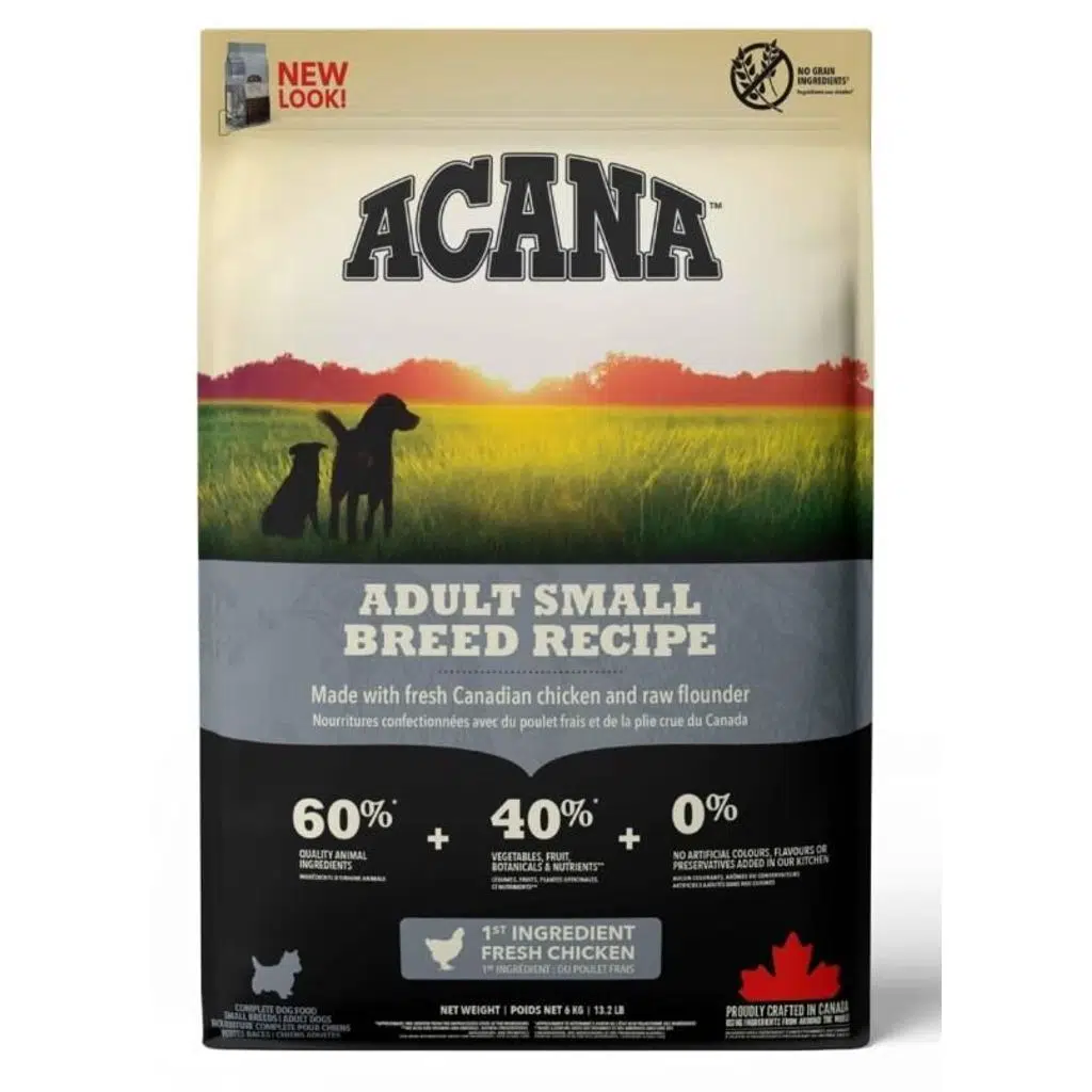 Acana Adult Small Breed her gün taze olarak teslim edilen, yöresel serbest-dolaşan tavuk, serbest avlanan pisi balığı, bütün kuluçka yumurtaları ve bol güneş alarak yetişen meyve ve sebzeler ile kanada'da ödüllü mutfaklarımızda üretilir.