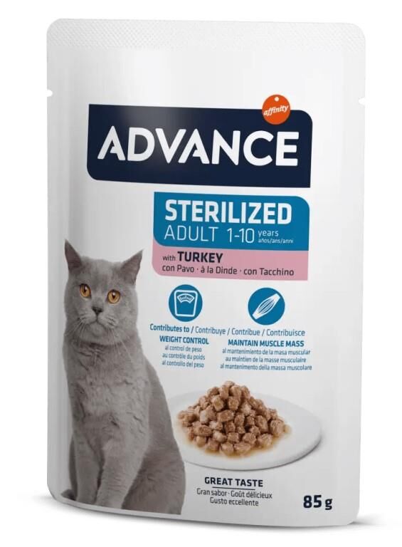 ADVANCE Wet Sterilized, 1 yaşından itibaren kısırlaştırılmış kediler için özel olarak tavsiye edilir.