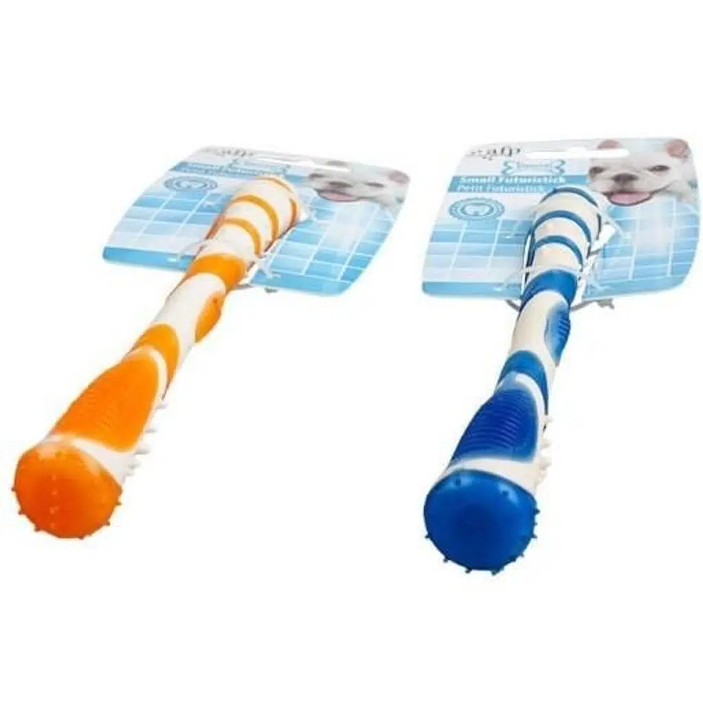 Küçük Futuristick, köpeğinizin çiğneme rutinine renk katacak. Yapıldığı 2 esnek malzemenin kombinasyonu, onu hem çok dayanıklı hem de köpeğiniz için çiğnemesi keyifli hale getirir. Yüzeydeki küçük tümsekler ve sırtlar, köpeğiniz çiğnerken dişlerin ve diş etlerinin temizlenmesine de yardımcı olur.