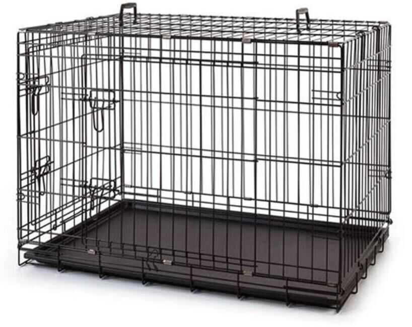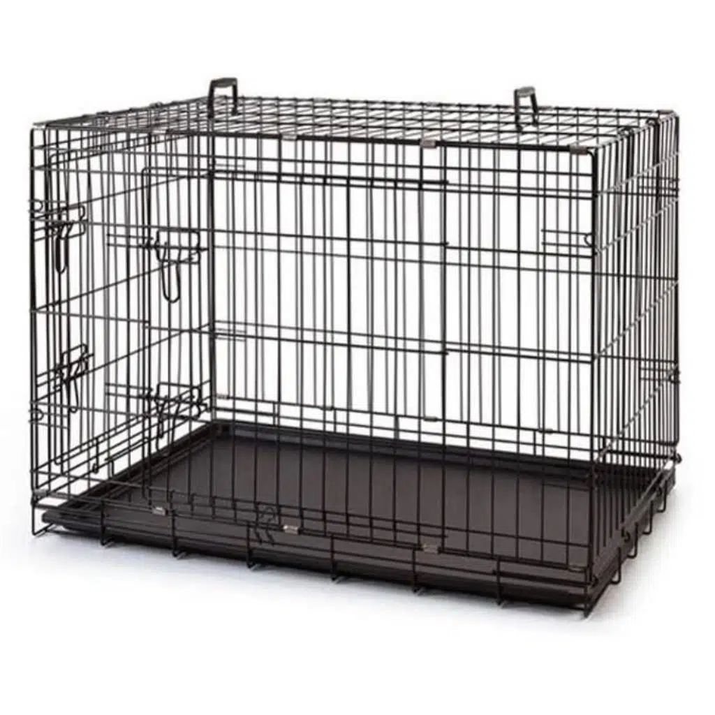 Köpekler ve kediler için taşıma ve barınma amaçlı kullanılabilen, plastik tepsili, istenildiğinde demonte olabilen kedi köpek kafesi.