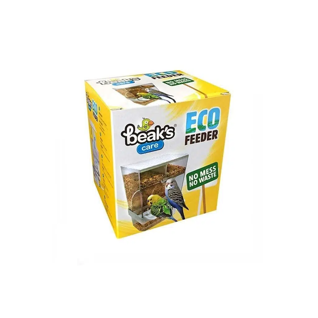 BEAKS ECO-FEEDER, akıllı tasarımı sayesinde yem israfını önleyen pratik bir kuş yemliğidir. Şeffaf gövdesi ile kalan yem miktarı kolayca görülebilir, geniş kabuk toplama haznesi sayesinde yem kabukları etrafa dağılmaz ve kafesin daha uzun süre temiz kalmasına yardımcı olur. Alt hazne dolduğunda çıkarılarak kolayca boşaltılabilir. Takıp çıkarılabilen bölmesi sayesinde ikinci bir yem, mama veya kum eklenebilir. Yüksek yem kapasitesi uzun süreli kullanım sağlar. Dayanıklı ve uzun ömürlü plastikten üretilmiştir. Muhabbet kuşu, kanarya, finch ve paraketler için uygundur, büyük taneli yemler için uygun değildir.