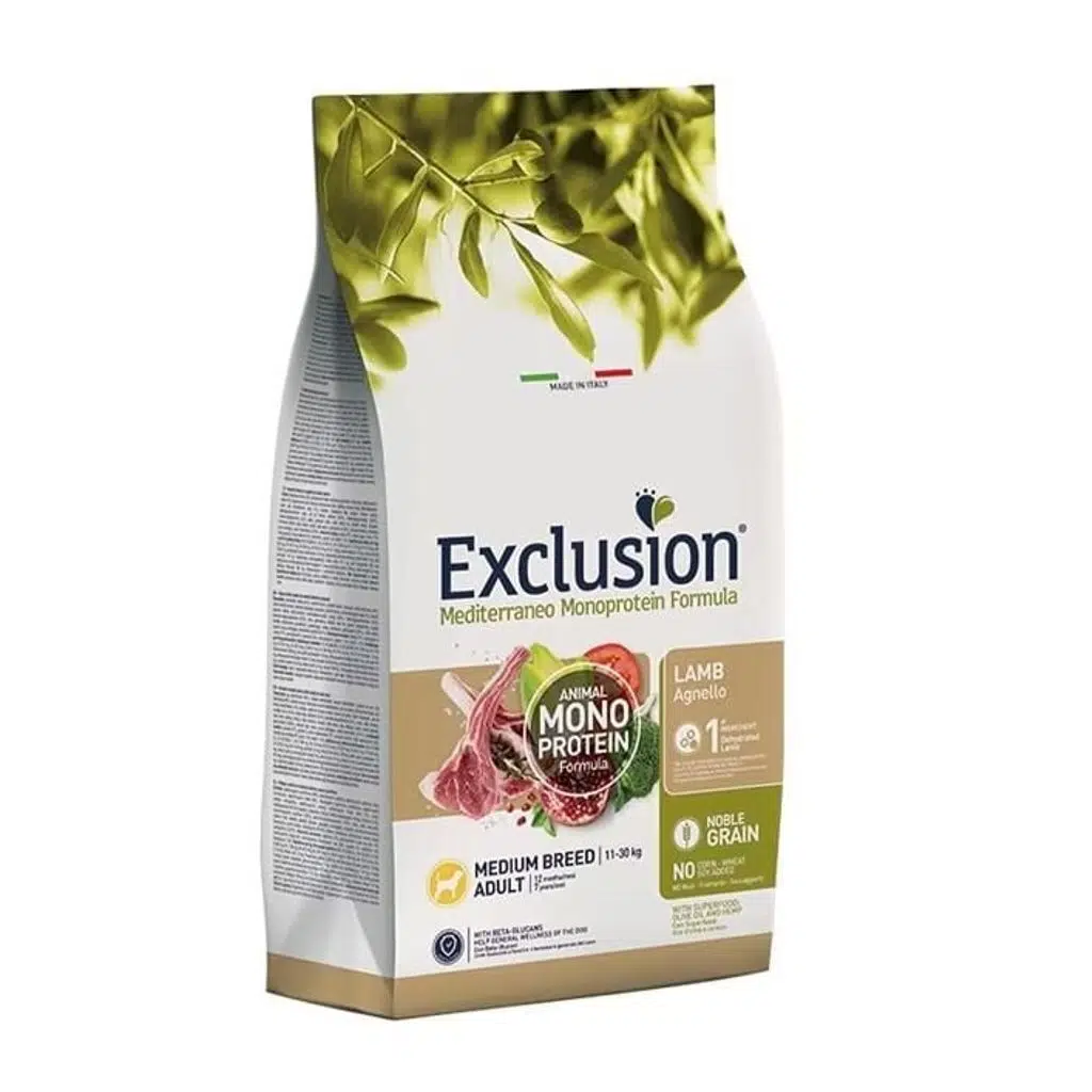 Exclusion Monoprotein Kuzu Etli ve Narlı Düşük Tahıllı Orta Irk Yetişkin Köpek Maması 12 Kg