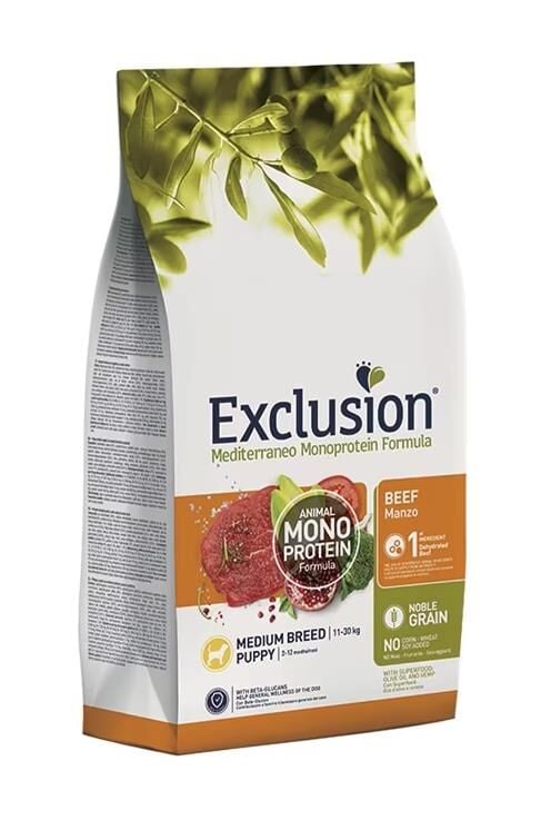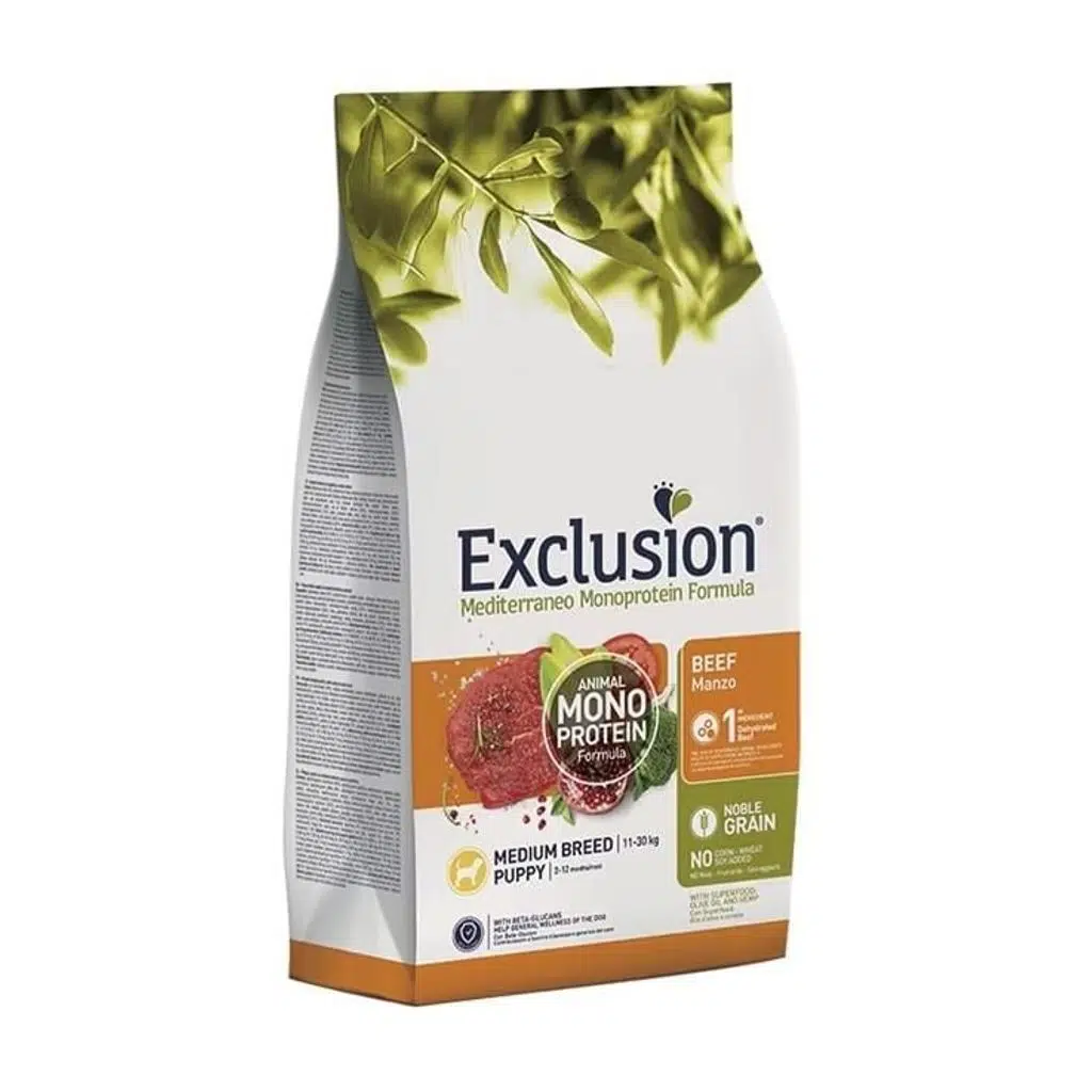 Exclusion Monoprotein Sığır Etli ve Narlı Düşük Tahıllı Orta Irk Yavru Köpek Maması 12kg