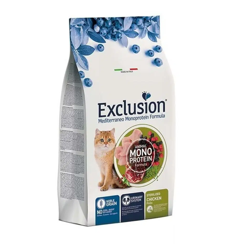 Exclusion Monoprotein Tavuklu ve Narlı Düşük Tahıllı Kısırlaştırılmış Kedi Maması, Yüksek kalitede tek bir düşük tahıl ile formüle edilmiştir. GDO'suz içerikle hazırlanmıştır. Mısır, buğday, soya İçermez. Somon yağı cilt sağlığını ve tüy parlaklığını iyileştirmeye yardımcı olur. Yiyeceklerin tazeliğini ve lezzetini korumaya yardımcı olmak için yalnızca doğal antioksidanlar içerir. Yeterli bir mineral dengesi sağlayarak sağlıklı bir üriner sistemi desteklemeye yardımcı olur. Omega 3 ve 6 yağ asitleri ile balık yağı içermesi sebebiyle kedinizin deri ve cilt sağlığına olumlu etki sağlar. Tüylerinin parlak bir görünüme kavuşmasını sağladığı gibi tüy dökülmesini ve deri hastalıklarının oluşumunu engeller. E ve C vitaminleri yönünden zengin olması ve birçok doğal antioksidan barındırması sebebiyle kedinizin bağışıklık sistemini güçlendirir. Hastalıklara karşı dirençli bir yapıya sahip olmasına yardımcı olur. Mikroplarla çok daha etkili bir şekilde savaşan güçlü yapısı sayesinde güvenle tüketimini sağlayabilirsiniz. B vitamini kompleksi ve kalsiyum da sinir ve kalp fonksiyonuna ve ayrıca enerji metabolizmasına yardımcı olur.Taurinin, göz sağlığı için retina gelişimini ve kalp kaslarının gelişimini sağlaması gibi vücutta birçok fonksiyonu vardır.