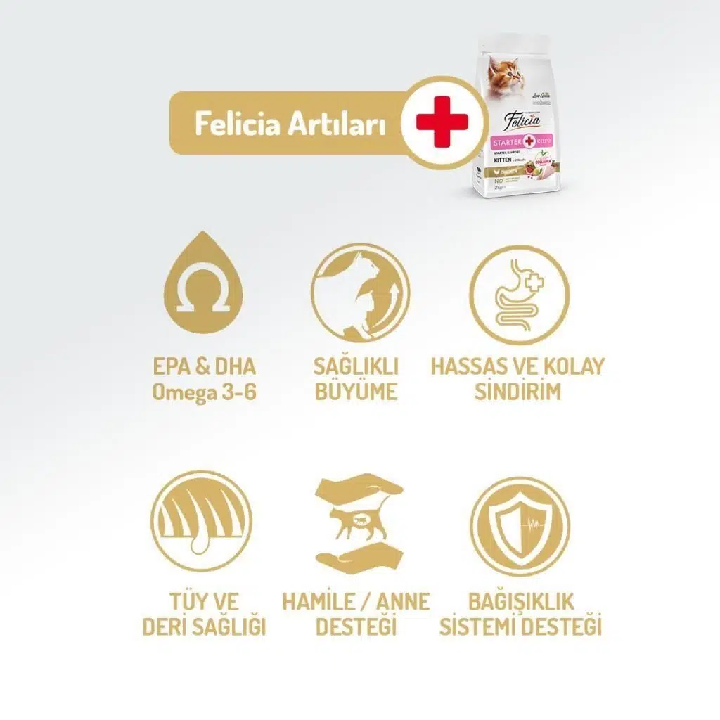 Felicia® Kitten, yavru kedinizin sağlıklı büyümesini ve güçlü bir bağışıklık sistemine sahip olmasını sağlayarak, ona uzun ve sağlıklı bir yaşam sunmak için mükemmel bir beslenme kaynağıdır.