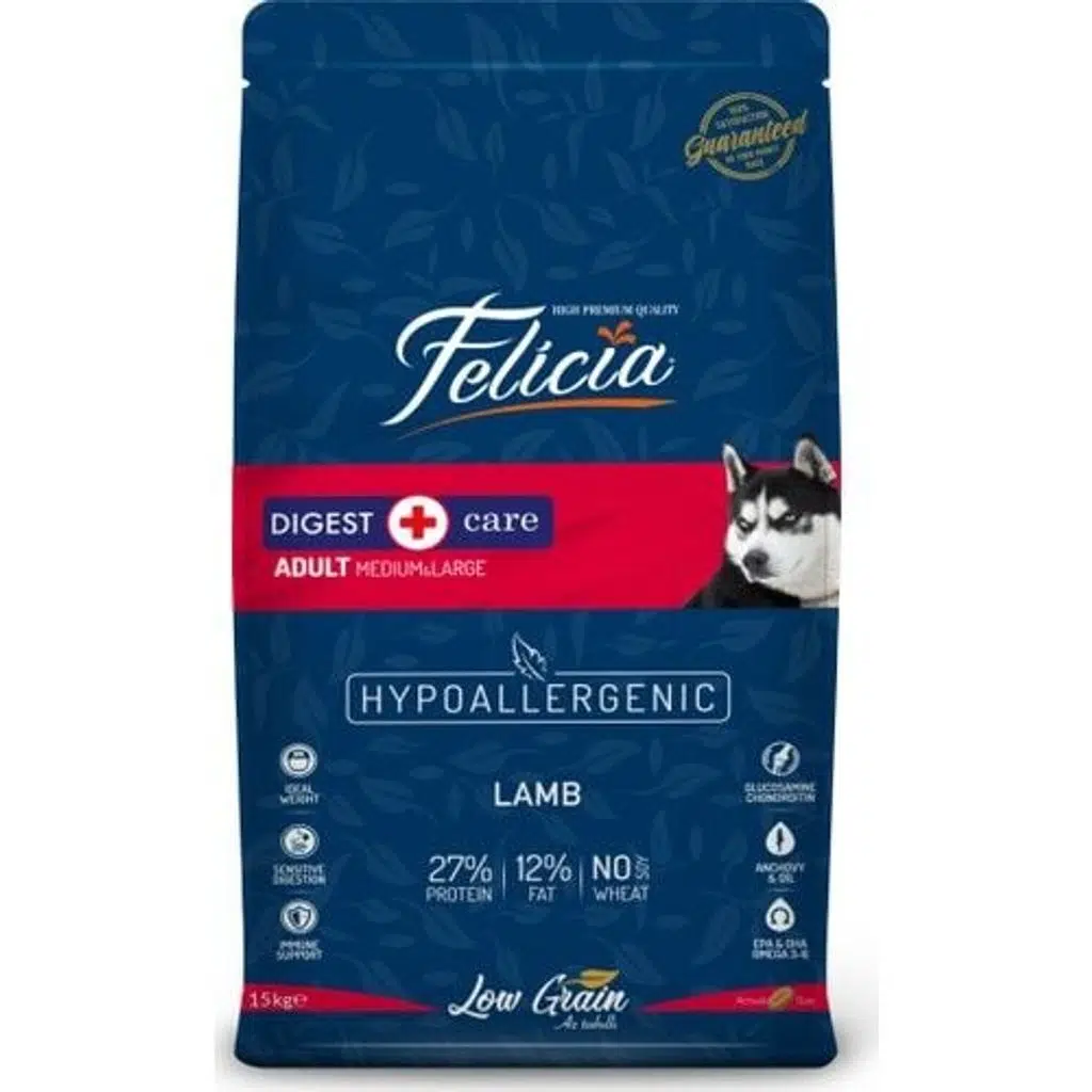 Felicia® Adult Dog Kuzulu ve Pirinçli, köpeğinizin sağlıklı bir yaşam sürmesini sağlamak için tüm besinsel ihtiyaçlarını karşılayan ideal bir mamadır.
