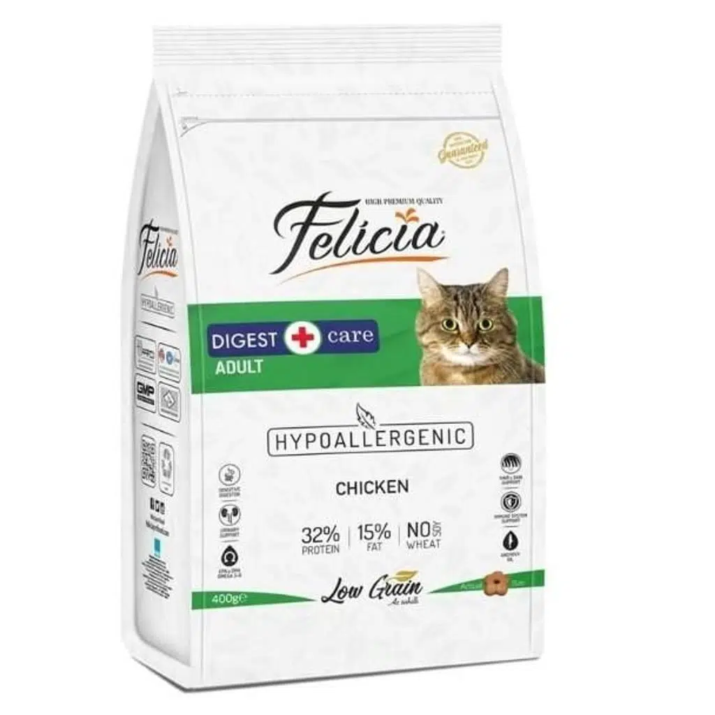 Sevimli dostlarımızın doğal yaşam şartlarına uygun şekilde beslenip, daha sağlıklı yaşayabilmeleri için beslenme uzmanlarımızla birlikte, tahıl oranı düşürülmüş hypoallergenic özel bir formül hazırladık.Yüksek oranda sindirilebilir hayvansal protein kaynaklarına sahip Felicia, sindirim ve alerji hassasiyetlerine karşı özel olarak geliştirilmiştir.