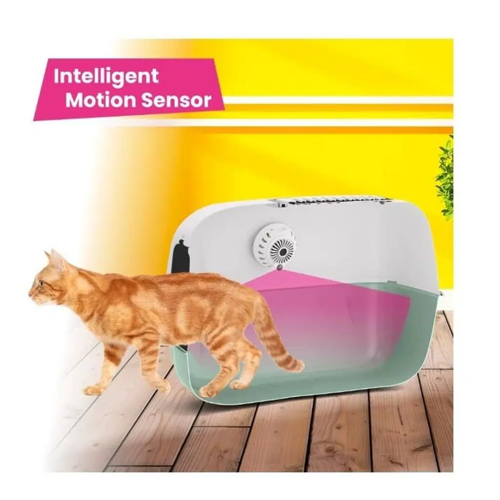 Akıllı Hareket Sensörü: Kediniz tuvaletten çıktıktan sonra otomatik olarak çalışmaya başlar; enerji tasarrufu sağlar ve evcil dostunuzu rahatsız etmez.