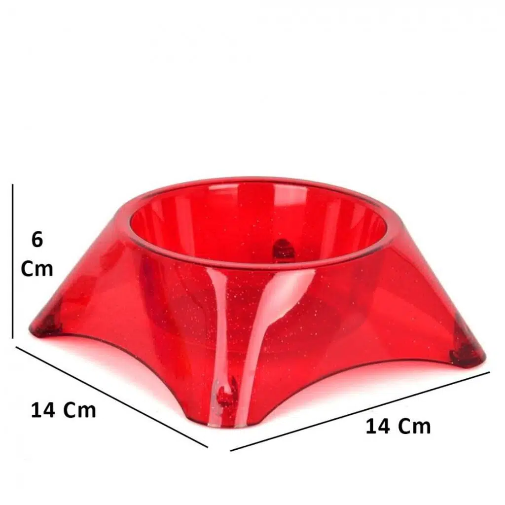 Flip Yuvarlak Mama Kabı Simli Kırmızı