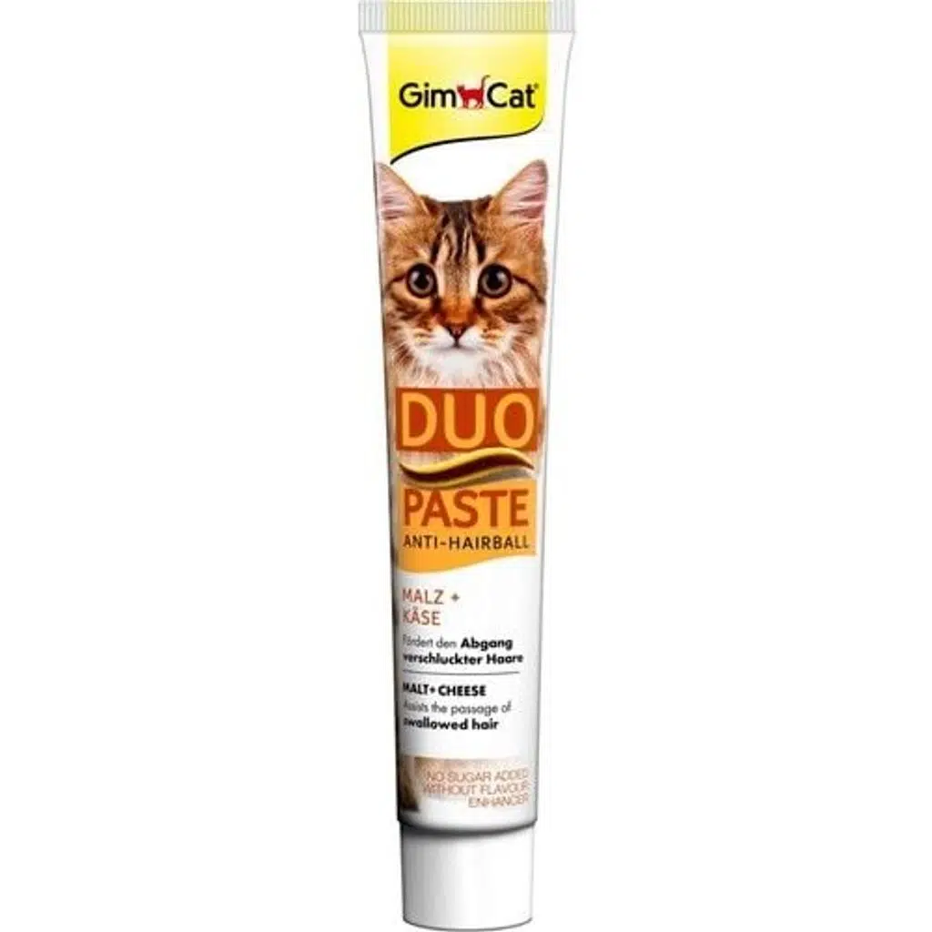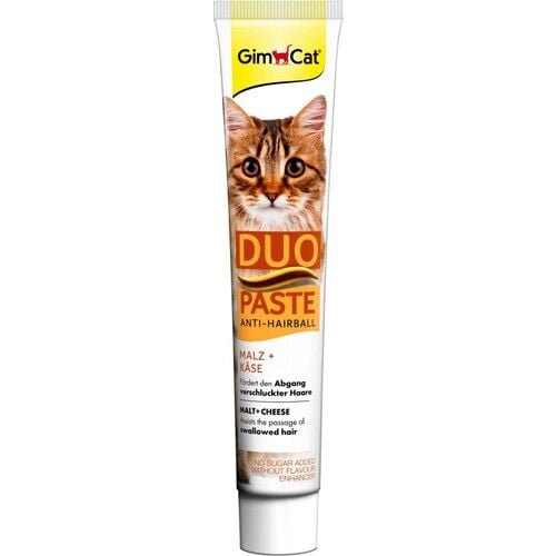 GimCat Anti-Hairball Duo-Paste, kediniz için sağlıklı bir tedavi yöntemidir. Lezzetli peynirin ve tamamen doğal aromatik maltın bu mükemmel birleşimi, yutulmuş kılların doğal yoldan çıkarılmasına yardımcı olur. Gimcat Anti-Hairball Duo Macun, kedinize hoş bir tedavi sağlar.