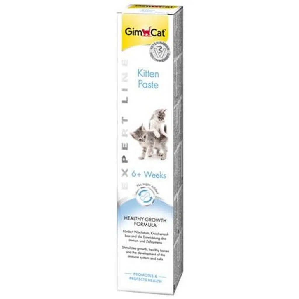 Yavru kediler büyümek ve güçlenmek için pek çok protein., vitamin ve minerale ihtiyaç duyar. Bunlar bağışıklık sistemini güçlendirir ve kemik oluşumuna yardımcı olur. GimCat Kitten Paste özellikle altı haftalıktan büyük olan genç kedilerin ihtiyaçları için yaratılmıştır. Sağlıklı büyüme formülü şunları içerir.Bileşim: Bitkisel kaynaklı türevler (Buğday), Et ve Et Türevleri, Balık ve Balık Türevleri, Katı ve Sıvı Yağlar (Balık Yağı-Keten Tohumu Yağı), Maya, Yumurta ve Yumurta Türevleri (Yumurta Sarısı Tozu), Su Yosunu Analiz Değerleri: Nem 12.00%, Ham Protein 7.00%, Ham Yağ 35.50%, Ham Lif 2.00%, Ham Kül 10.50%, Kalsiyum 2.00%, Fosfor 1.00%.Besleme talimatı: Altıncı haftadan itibaren katı gıdalarla beslenmeye başlayıncaya kadar günlük 6 cm macun verilebilir.(1 cm=0,5 gr) Kedinizin mamasına karıştırarak da verebilirsiniz