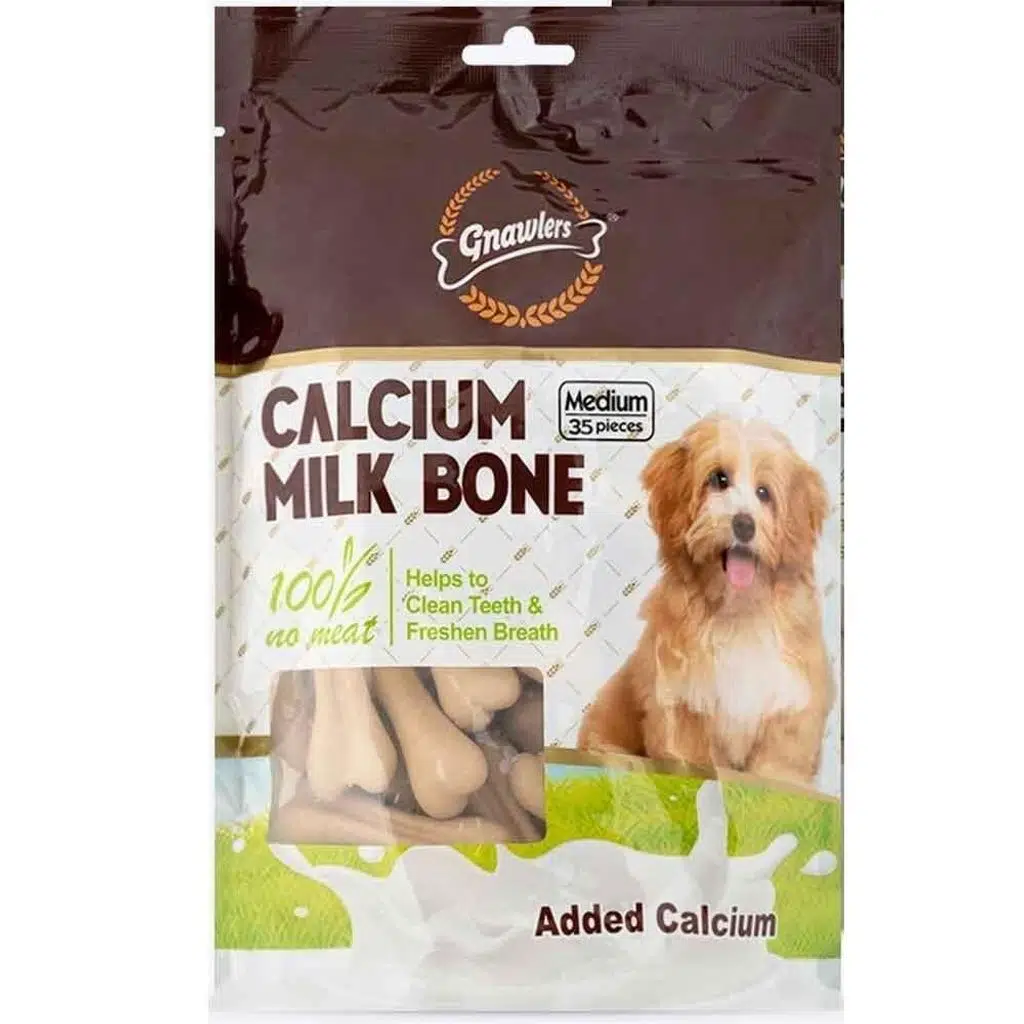 Gnawlers Calcium Milk Bone, köpeğinizin dişlerini temizlerken çene kaslarını da güçlendirir. Çiğneme sırasında dişlerdeki plak oluşumunu azaltarak diş etlerini sağlıklı tutar.