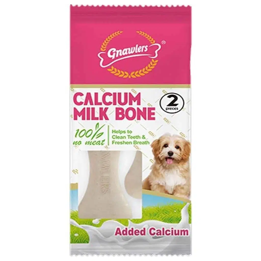 Gnawlers Calciium Milk Bone, köpeğinizin kemik ve diş yapısını desteklemek için tasarlanış etkili bir çözüm sunar. Yavru köpeklerden yetişkin köpeklere kadar tüm türler için uygundur.