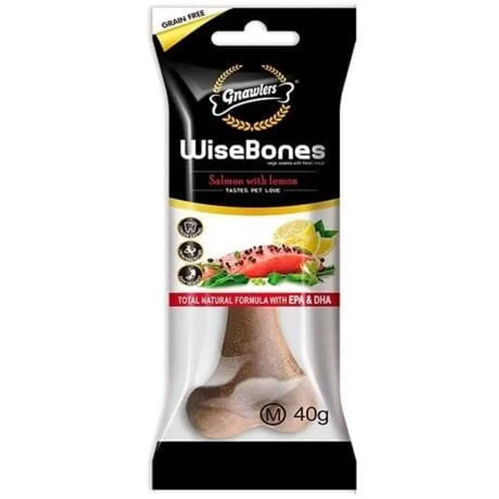 Gnawlers Wise Bone, köpeğinizin severek tüketmesi için özel olarak tasarlanmıştır.Somon unu (%12.5)içeriği, köpeğinizin damak tadına hitap ederken,doğal limon yağıtaze ve aromatik bir deneyim sunar. Bu ürün, köpeğinizin enerji ihtiyacını karşılamaya yardımcı olanpatates nişastası (%60.12)ile formüle edilmiştir.