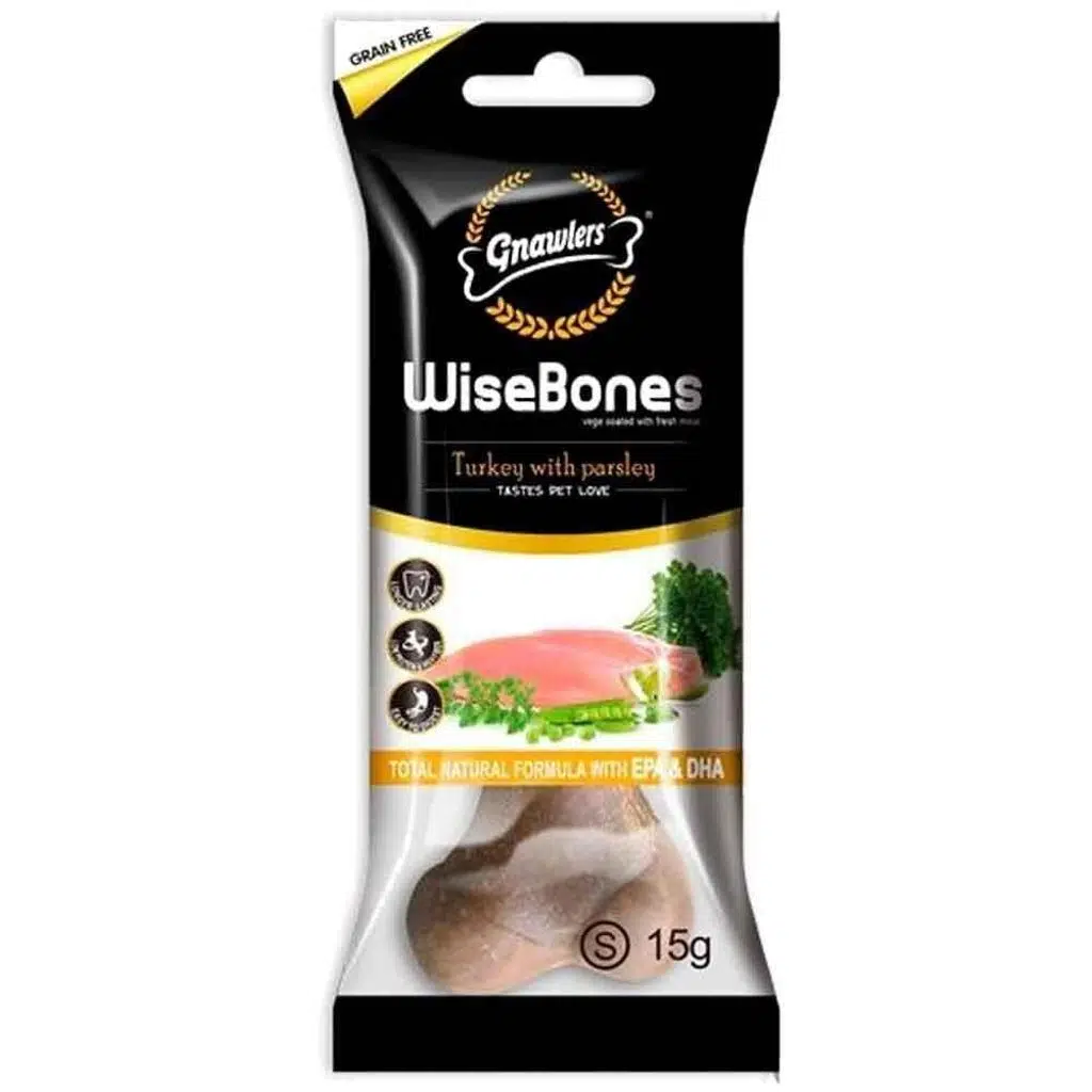Gnawlers Wise Bone,hindili aromalızengin yapısı ile köpeğinizin damak tadına hitap eder. Bu ürün, köpeğinizin hem severek tüketebileceği hem de faydalı besinler alabileceği bir ödül maması olarak tasarlanmıştır. İçeriğindekipatates nişastası (%60.12)vebezelye unu (%25), enerji ve lif ihtiyacını karşılayarak sindirimi kolaylaştırır.