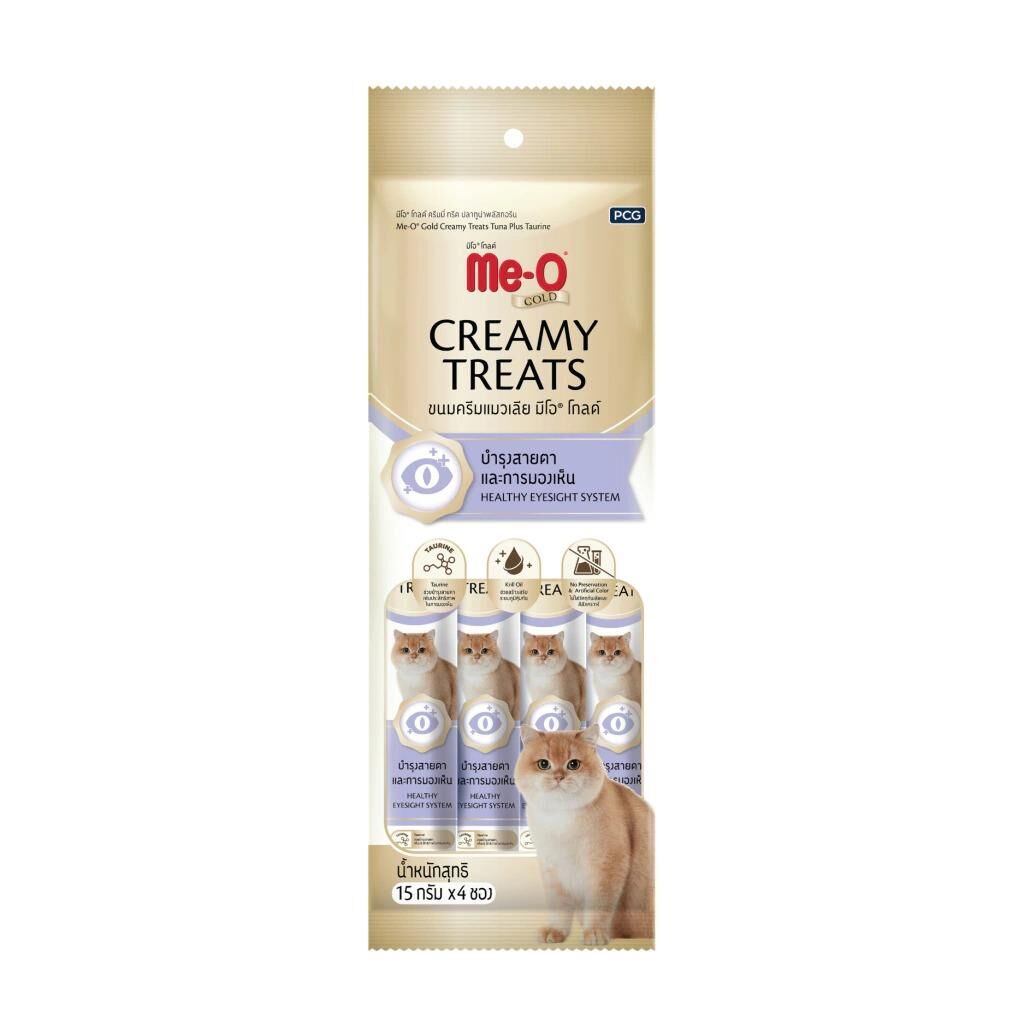 Me-O Gold Creamy Ton Balığı ve Taurin, yüksek kaliteli içeriği, bol vitamin ve mineralle formülize edilmiş kedi ödülü. İçeriğindeki Prebiotic ile bağışıklık sistemini güçlendirir.