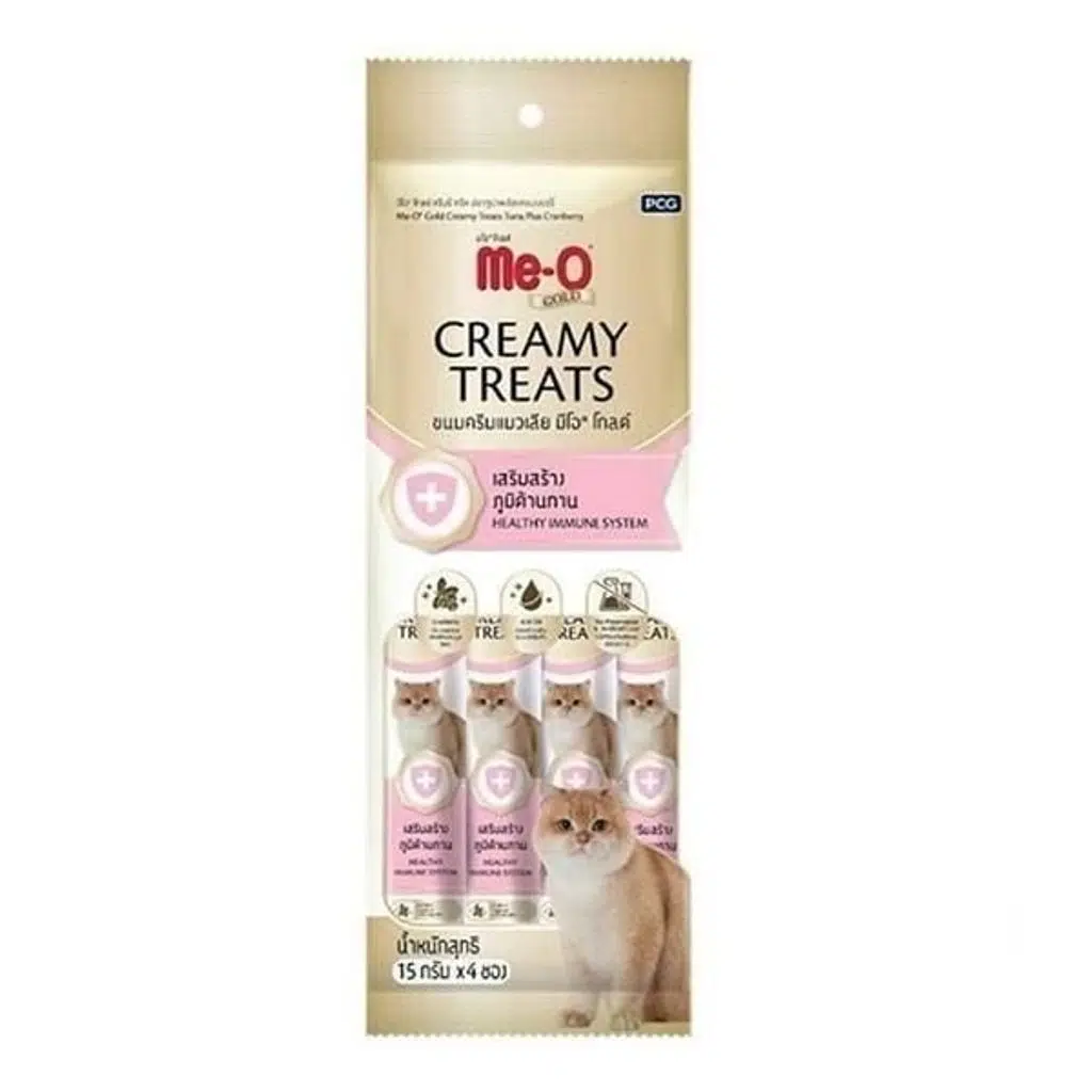 Me-O Gold Creamy Ton Balığı ve Turna Yemişi, yüksek kaliteli içeriği, bol vitamin ve mineralle formülize edilmiş kedi ödülü. İçeriğindeki Taurin ile bağışıklık sistemini güçlendirir.