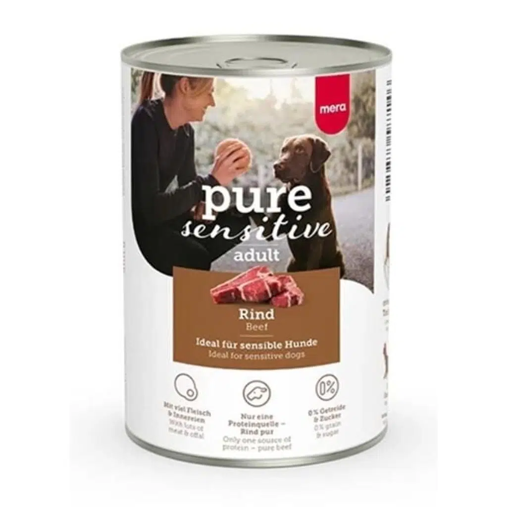 Mera Pure Sensitive Adult Biftekli Köpek Konservesi, gıda hassasiyetleri ve sindirim problemleri yaşayan yetişkin köpekler için özel olarak geliştirilmiştir. %100 hayvansal içerikli tek protein kaynağı olan sığır eti, köpeğinizin beslenme ihtiyaçlarını karşılarken alerji ve intolerans riskini minimuma indirir. Formülünde tahıl kullanılmadan, yalnızca temel ve kaliteli bileşenlere yer verilmiştir.