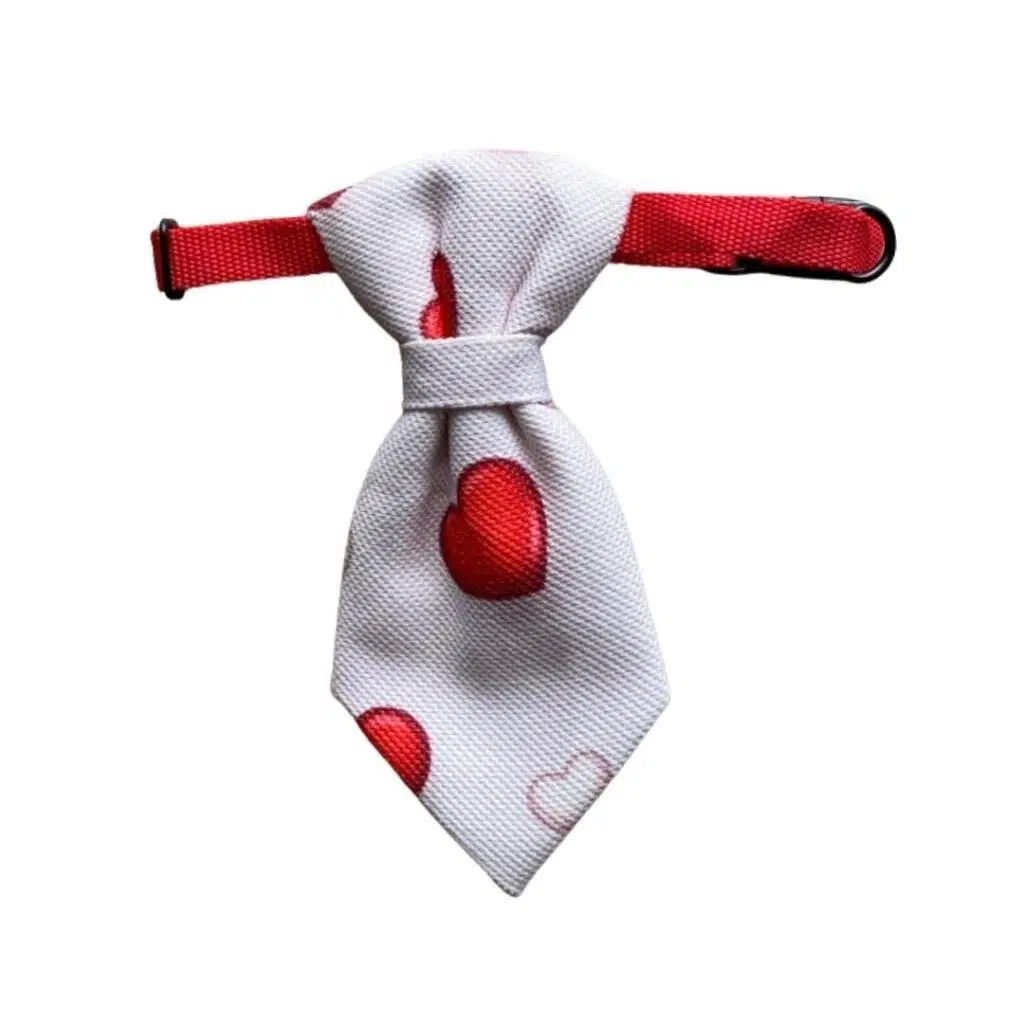 Minik Paw Kartela Kırmızı Beyaz Kalp Kravat