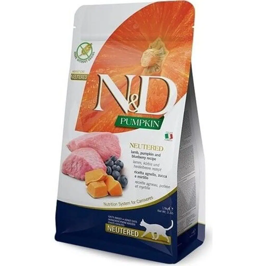ND Balkabaklı Kuzu Etli Yaban Mersinli Tahılsız Kısır Kedi Maması 1.5 Kg