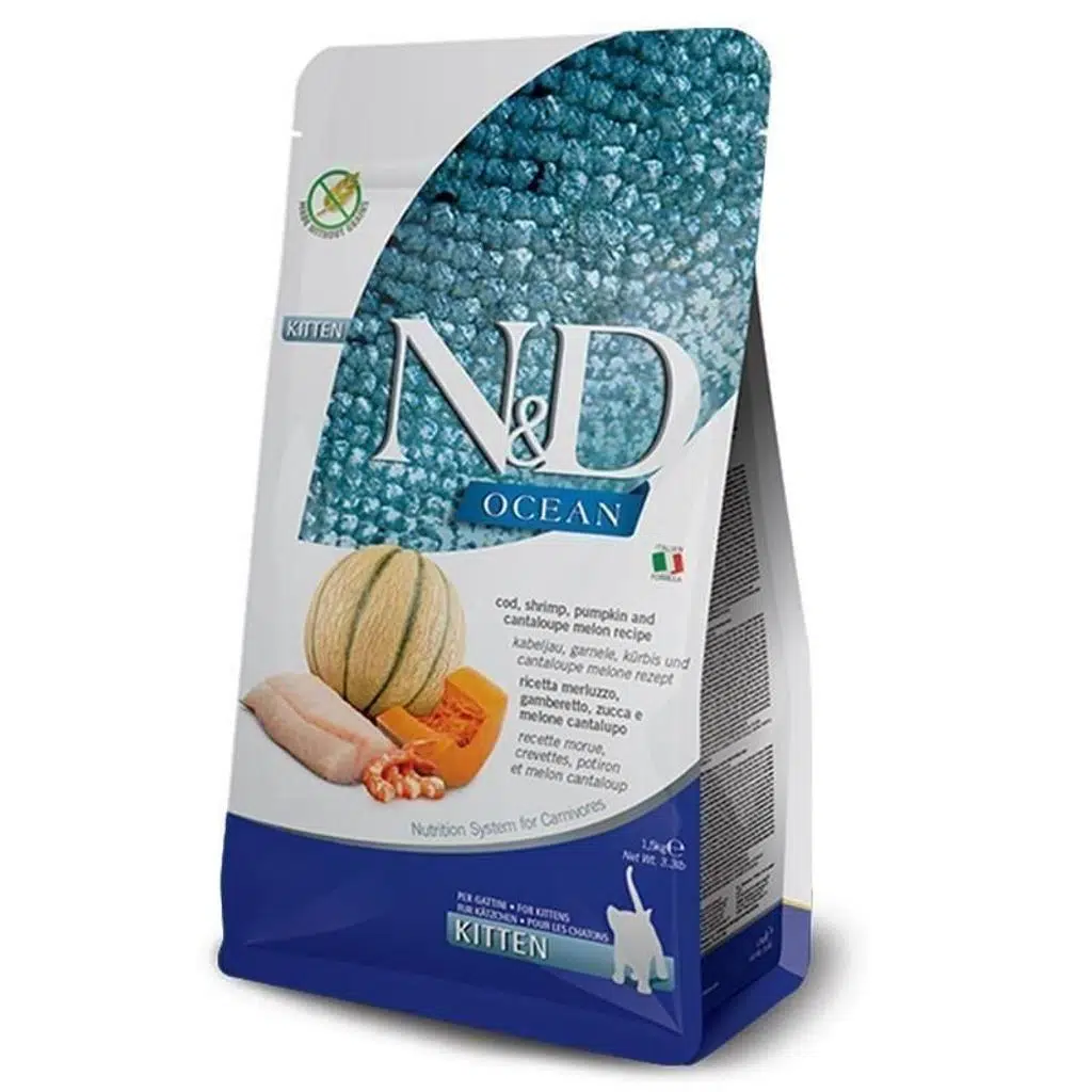 ND Ocean Kitten Balkabaklı Morina Balıklı Karidesli Kavunlu Tahılsız Yavru Kedi Maması 1.5 Kg