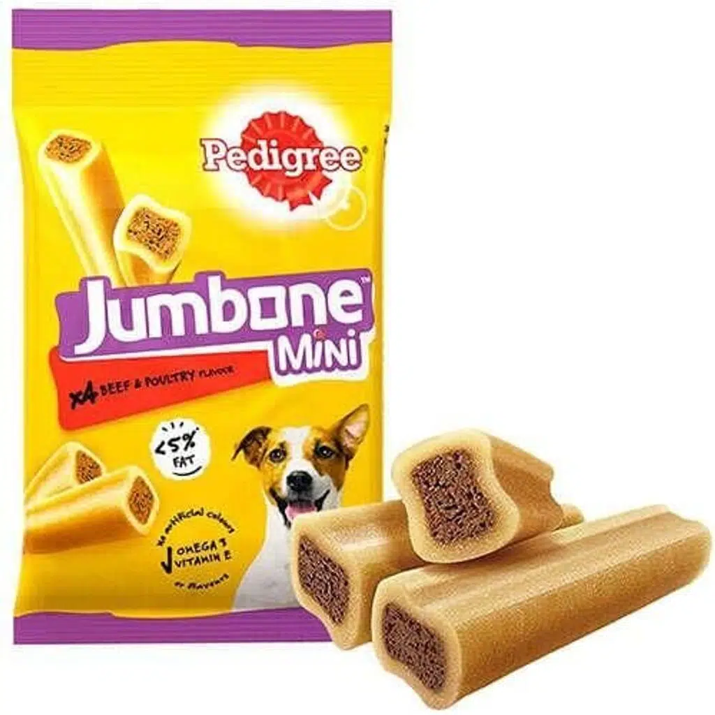 Orijinal, lezzetli ve besin değeri yüksek olan köpek ödülü Jumbone, köpeğinizin ödül zamanının tadını çıkaracağı yumuşak formda biftek içeren rulo halindedir. Beslenme uzmanları tarafından özel seçilmiş taze et ile hazırlanıp maksimum lezzet için kurutulmuştur. Pedigree Jumbone biftekli ödül ruloları köpeğinizi ne kadar sevdiğinizi göstermek veya onu ödüllendirmek için mükemmel bir yoldur.