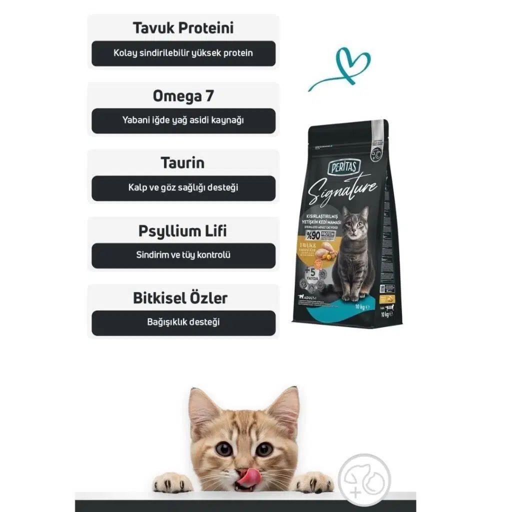 | Etiketler | Peritas-Peritas Signature Tavuklu Kısırlaştırılmış Yetişkin Kedi Maması 10 kg |