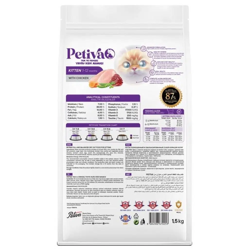 | Etiketler | Petiva-Petiva Yavru Kediler İçin Tavuk Etli Kuru Kedi Maması 1,5 Kg |