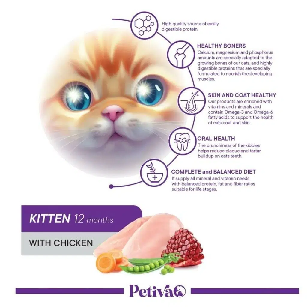 Kedinizin sağlıklı bir başlangıç yapması ve büyüme sürecinde en iyi beslenme desteğini alması için Petiva Yavru Kediler İçin Tavuk Etli Kuru Kedi Maması ile tanışın!