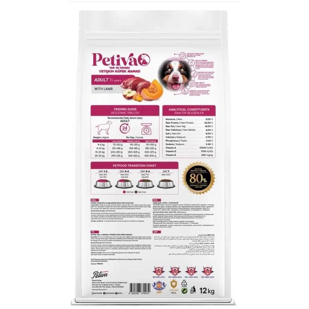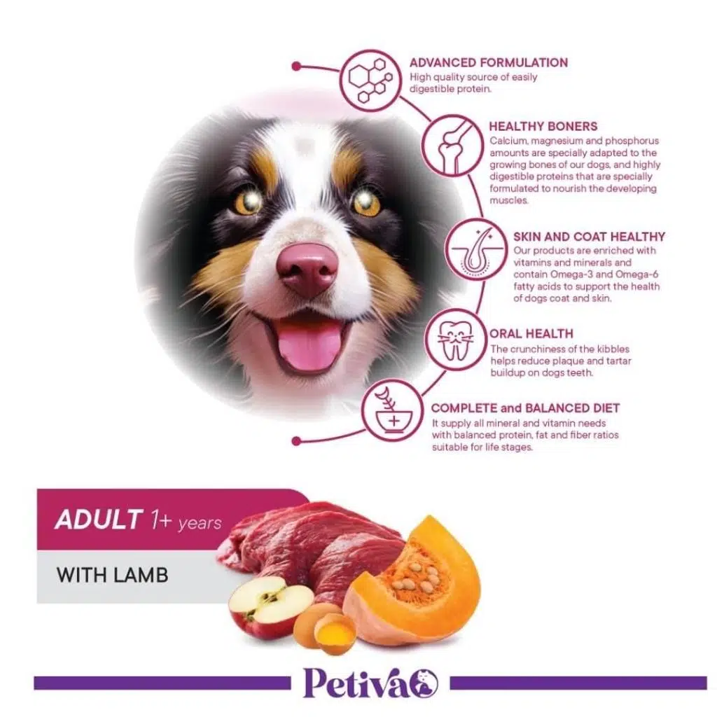 Petiva Yetişkin Köpekler İçin Kuzu Etli Kuru Köpek Maması 12 Kg