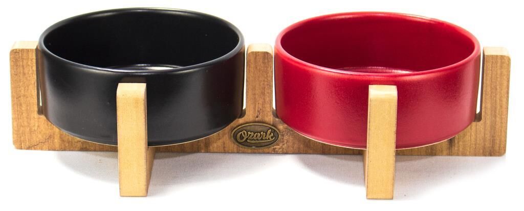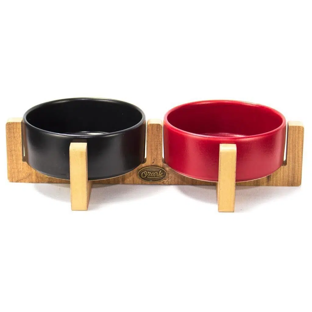 Petvoda Ozark 2'li Ahşap Seramik Mama ve Su Kabı Seti Siyah-Kırmızı