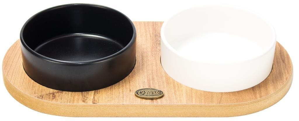 Petvoda Ozark 2'li Oval Seramik Mama ve Su Kabı Seti Siyah-Beyaz