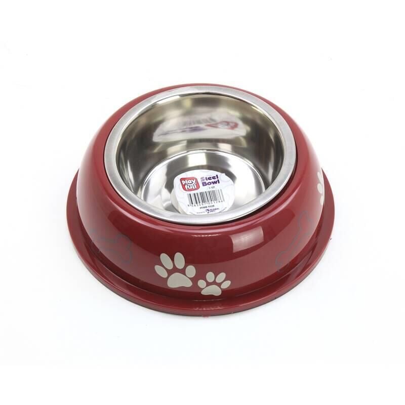 Playfull Pati ve Kemik Desenli Plastik Çelik Mama ve Su Kabı Tabanlı