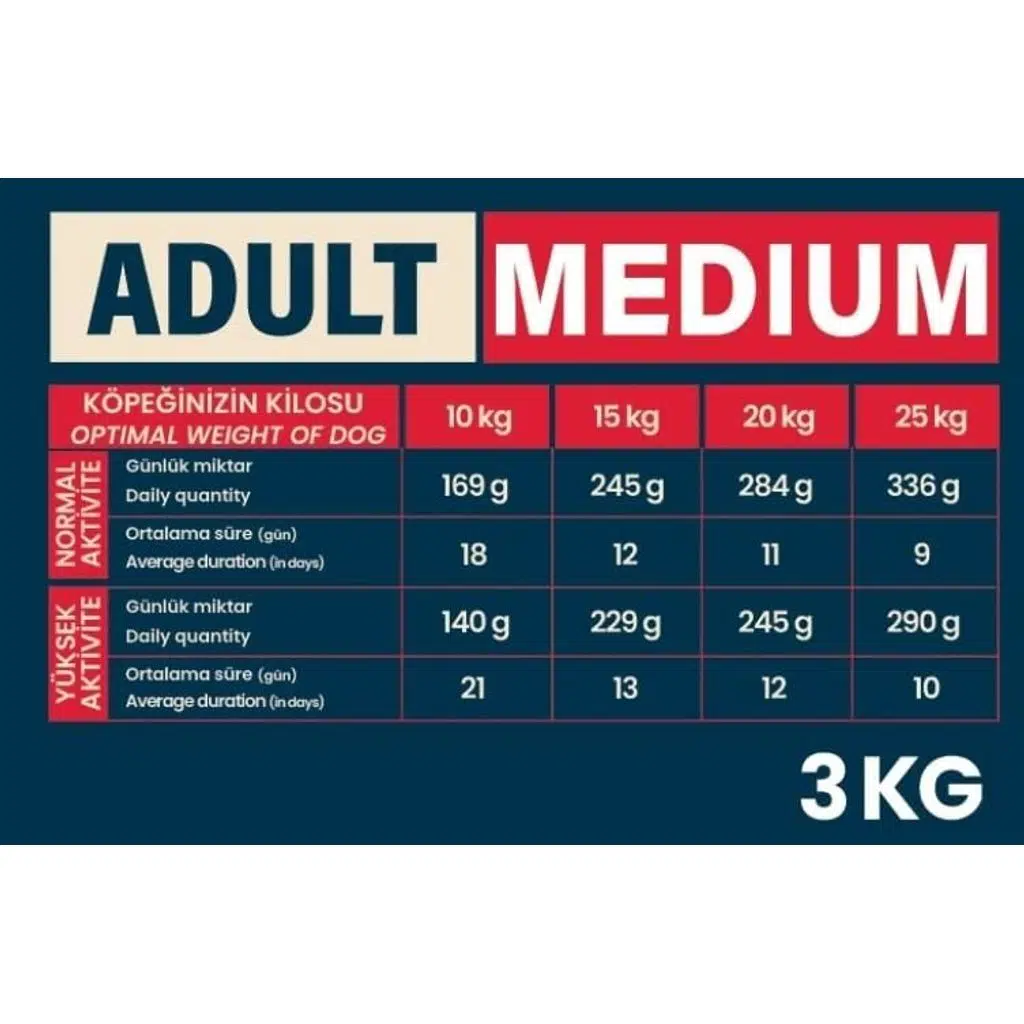 Orta ırk köpeklerinizin sağlığını ve enerjisini desteklemek için ideal bir tercihtir.