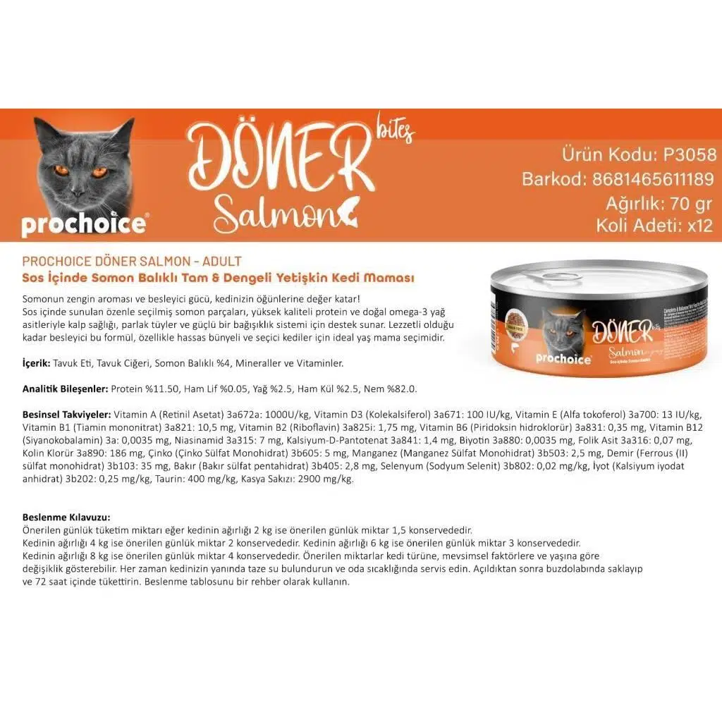 | Etiketler | Prochoice-Prochoice Döner Bites Somonlu Yetişkin Kedi Konservesi 70 GR |