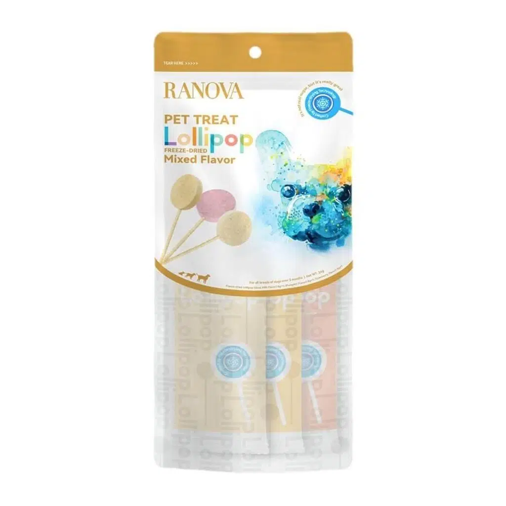 Renkli lolipop şeklinde tasarlanmış Ranova köpek ödülü, köpeklerin ilgisini çekerek eğlenceli bir şekilde beslenmesini sağlar. İçeriğinde kullanılan aromalar köpeklerin damak zevkine hitap eder.