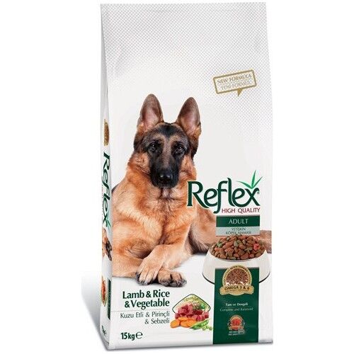 Kaliteli protein içeriği ve zengin vitamin ve mineral içeren Reflex Adult Lamb, Rice & Vegetable yetişkin bir köpeğin ihtiyaç duyduğu bütün besin öğelerine sahiptir.
