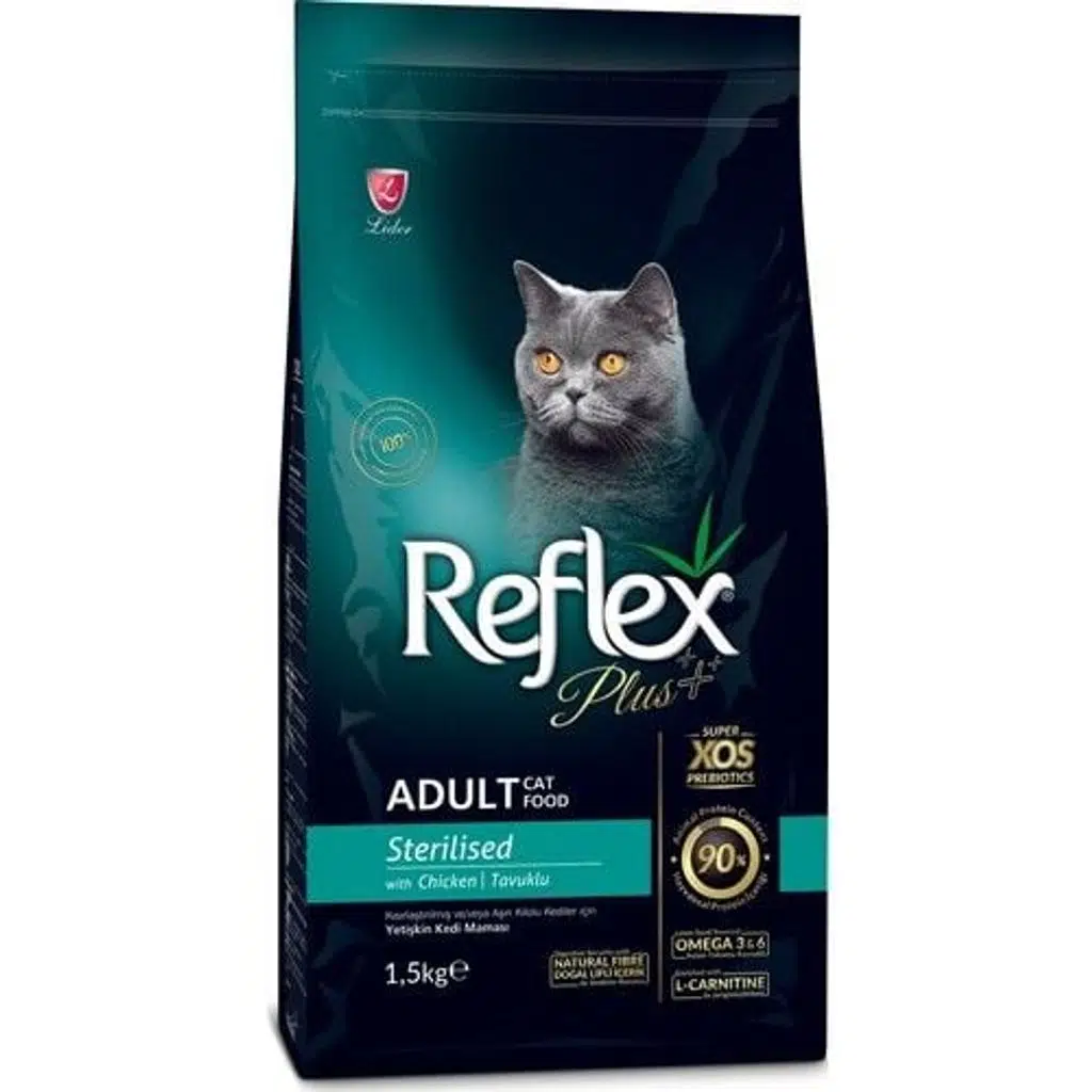 Reflex Plus Sterilised with Chicken, kısırlaştırılmış ve/veya aşırı kilo almaya yatkın yetiştin kedilerin beslenme ihtiyaçlarını karşılamak üzere kedi/köpek beslenme uzmanları tarafından özenle formüle edilmiş tam ve dengeli, tavuk proteini içeren süper premium kedi mamasıdır.