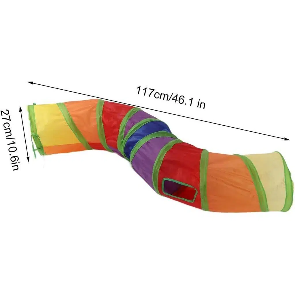 Kedi oyuncağı tünel, tünel kaydırak 117 cm (48 inç) uzunluğunda, 25 cm (10 inç) çapındadır. Bu kedi tüneli tüm kediler ve küçük hayvanlar için uygundur, oyun evi ve barınak kombinasyonu