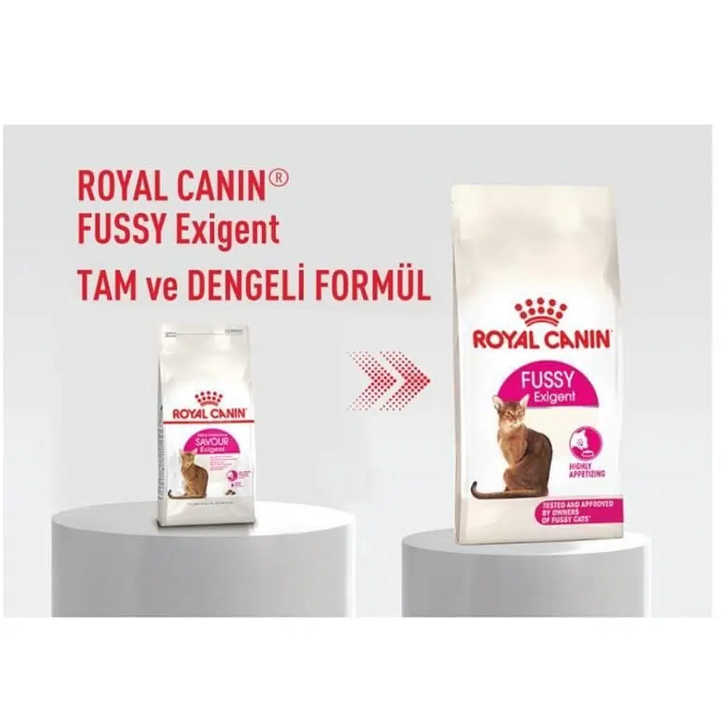 ROYAL CANIN® Fussy Exigent, her şeye “hayır” diyen seçici kediler için özel olarak geliştirilmiş yüksek lezzetliliğe sahip bir formüldür. Özel aroma kombinasyonu ve çıtır mama dokusu sayesinde iştah uyandırır. Enerji açısından yoğun, protein bakımından zengin yapısıyla az miktarda ama seçici beslenen yetişkin kediler için idealdir. Sağlıklı kilo kontrolünü destekler, kısırlaştırılmış kediler için de uygundur. Üriner sistem sağlığını desteklemek üzere formüle edilmiştir.