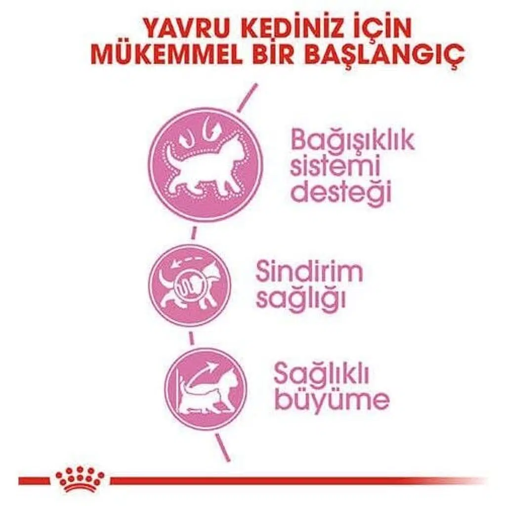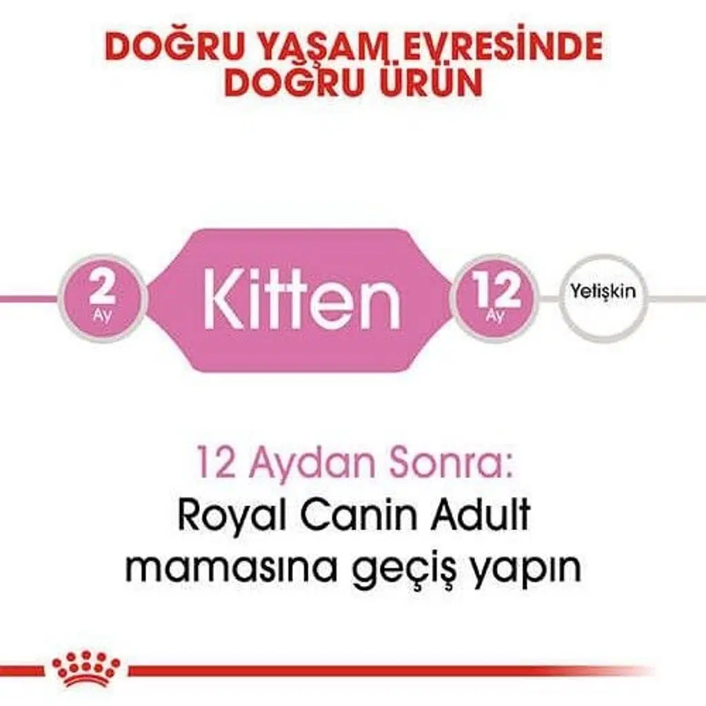 Royal Canin Kitten, 4-12 aylık yavru kediler için özel olarak formüle edilmiş, tam ve dengeli bir kuru mamadır. Yavrunun büyüme ve gelişme sürecine uyum sağlayacak şekilde tasarlanmış bu mama, sağlıklı bir büyüme için gerekli tüm besin öğelerini içerir.
