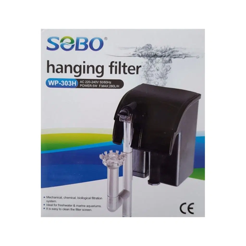 Sobo Mini Askı Filtre, 280 L/h debisi ve düşük enerji tüketimiyle 20–70 litre arası akvaryumlarda kusursuz filtrasyon sağlar. Askı yapısı sayesinde akvaryum içinde yer kaplamaz, sessiz çalışır ve su dolaşımını sürekli canlı tutar. Hem mekanik hem biyolojik filtrasyon yaparak suyu berrak ve sağlıklı durumda tutar.