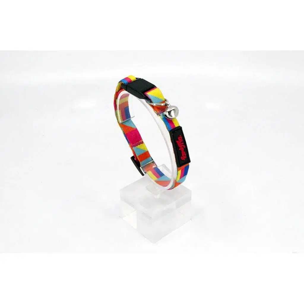 Desenli ve çıngıraklı ayarlanabilir kedi boyun tasması.