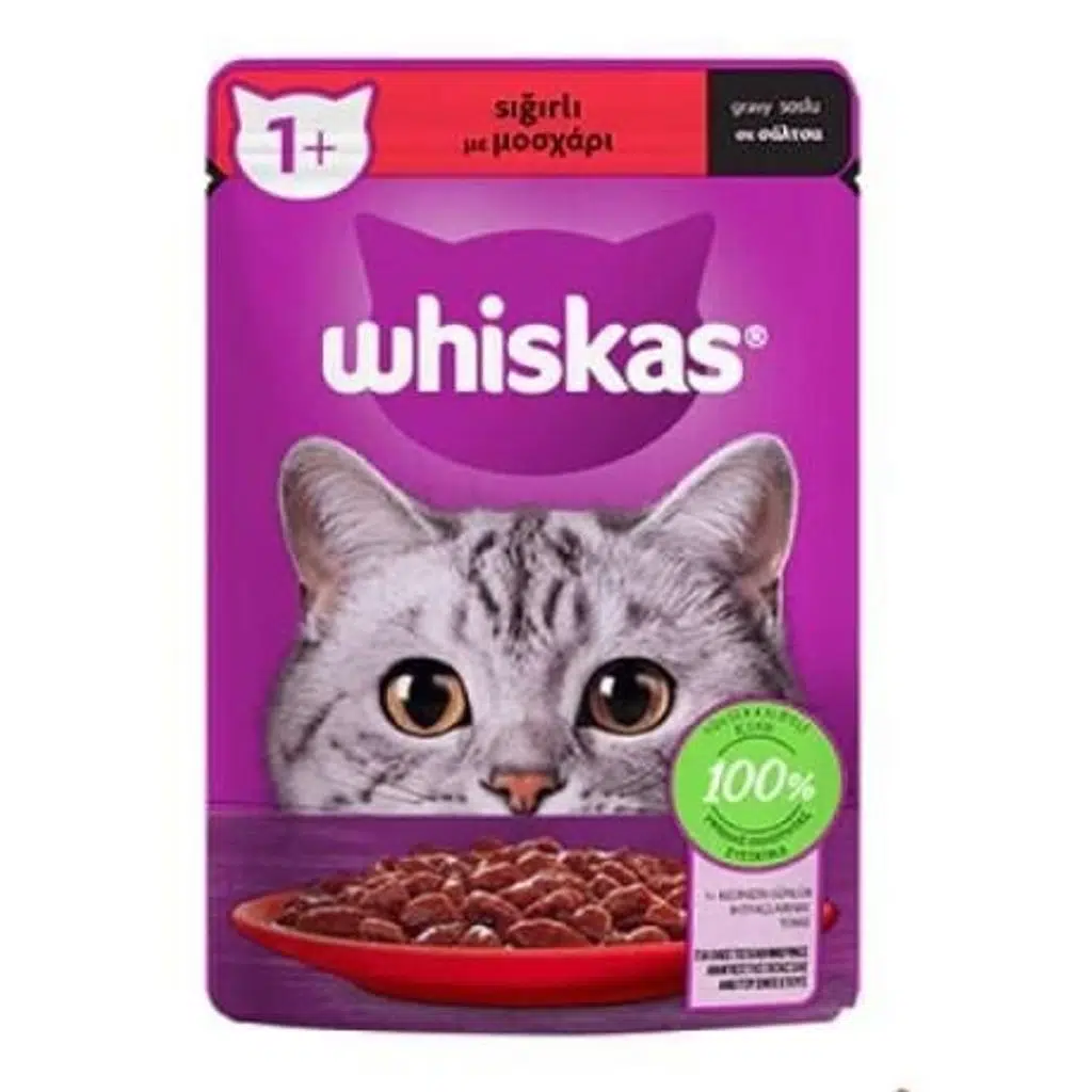 Whiskas Pouch Sos İçinde Sığır Etli Yetişkin Kedi Konservesi 85gr