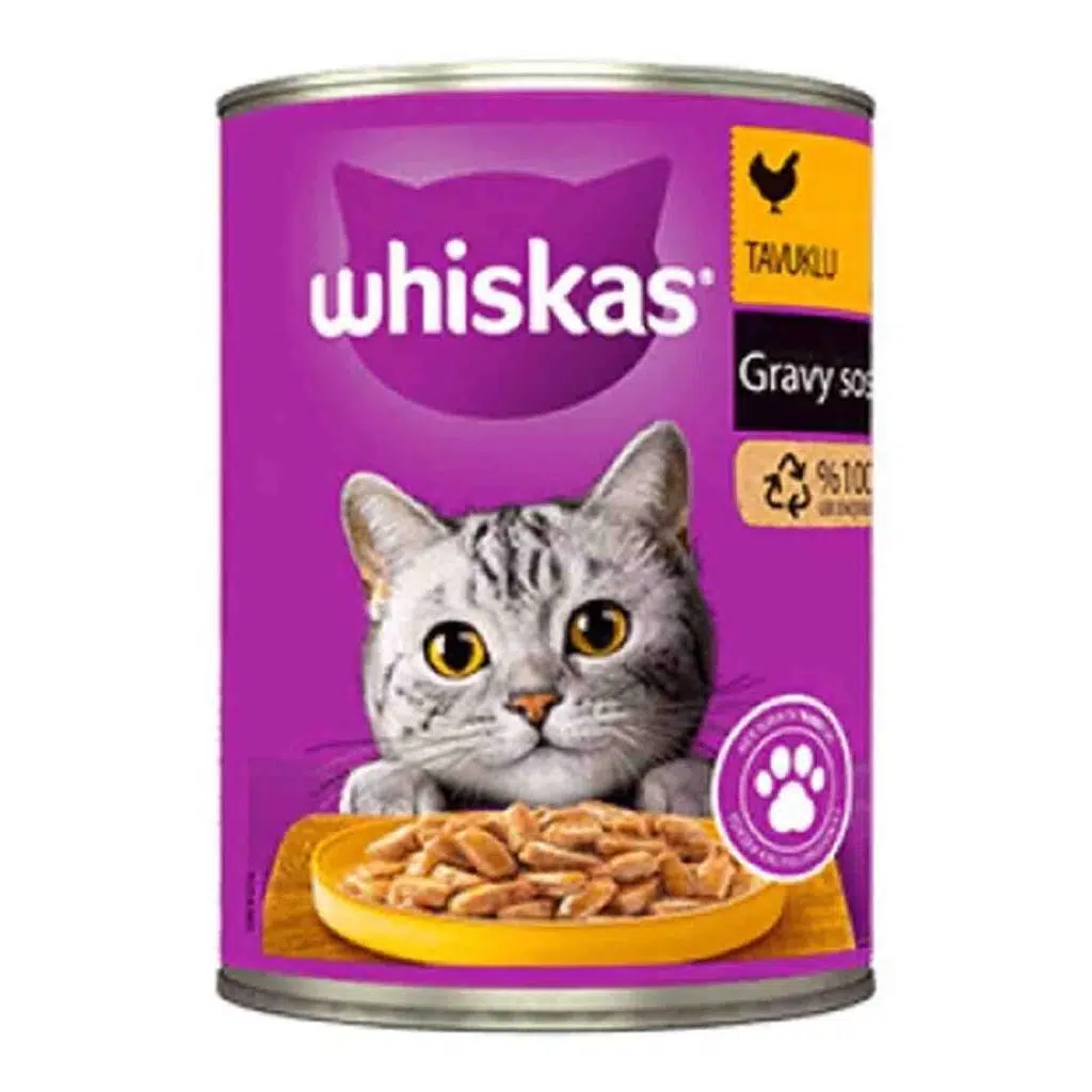 Whiskas sos içinde tavuklu yetişkin kedi konservesi; Yetişkin kediler için özel olarak formüle edilmiştir. Gravy sos içerisinde tavuk etiyle harmanlanmış içeriğiyle kedinizin karşı koyamayacağı lezzettedir. Yetişkin kedi konservesi; 12 ay sonrası kediler için dengeli protein ve yağ oranı ile üretilmiştir. Vitamin ve mineraller yetişkin kedinizin bağışıklığının güçlenmesine destek vermektedir.